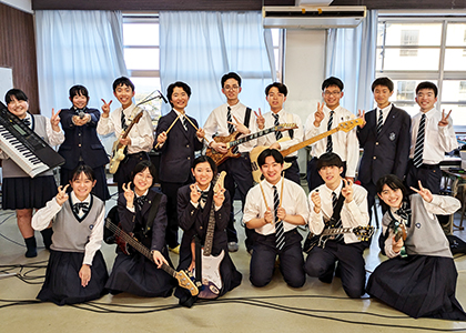軽音楽部は高校から楽器を始めたばかりの部員が中心ですが、メンバーが互いに成長し合える練習を目指しています。