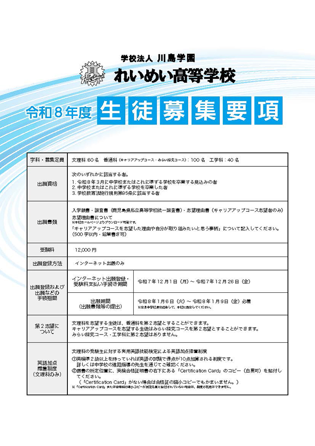 令和8年度 生徒募集要項につきましては、下のバナーをクリックすると閲覧できます。