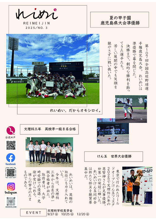 「れいめい人」はれいめいの卒業生やれいめいで輝く人を紹介したり、イベントの告知をしたりする広報紙です。