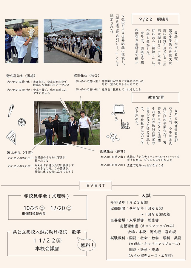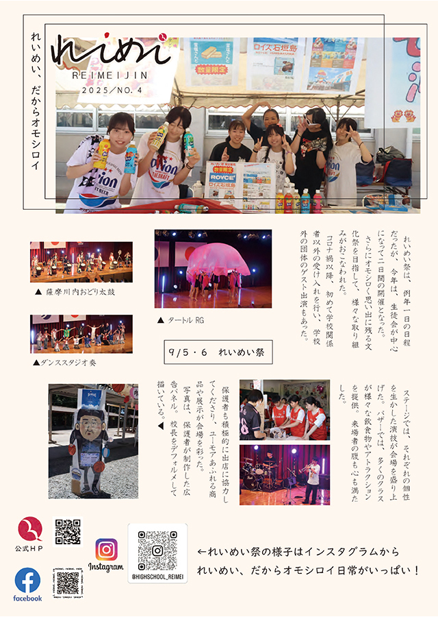 「れいめい人」はれいめいの卒業生やれいめいで輝く人を紹介したり、イベントの告知をしたりする広報紙です。