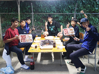 言葉や文化の違いを越えて、生徒たちはまるで以前からの友人のように打ち解け、笑顔あふれる時間を過ごしました。最終日には校内でバーベキューを行い、日が暮れても別れを惜しみながら野球や会話を楽しんでいました。