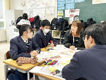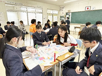 また、翌12日(水)には、静岡県にある常葉中学校の皆さんとオンライン交流を行いました。常葉中学校も2月に開催されるクエストカップ全国大会に向けて「シヅクリ」という、生徒・学校・企業で「静岡の未来」を創るプロジェクトに取り組んでいて、れいめいと同様にトヨタ自動車の販売会社トヨタユナイテッド静岡と協働しています。当日は、それぞれの学校の生徒代表が、学校紹介やプロジェクトにかける思いを共有し、最後はエール交換を行いました。事前に、これまで考えてきたアイデアに対してフィードバックコメントを送り合っており、共通のパートナー企業や、地域の特産品であるお茶を活用したアイデアに触れる中で、生徒たちは親しみを感じ、交流の機会を心待ちにしていました。同世代の仲間が、地域の枠を越えて、同じ志を持って未来の地域づくりに取り組んでいることを実感し、生徒たちは刺激とともに、つながりを感じるひとときとなりました。今後、全国大会の場で再び顔を合わせられるよう、お互いに県予選突破を目指して励んでくれることと思います。
