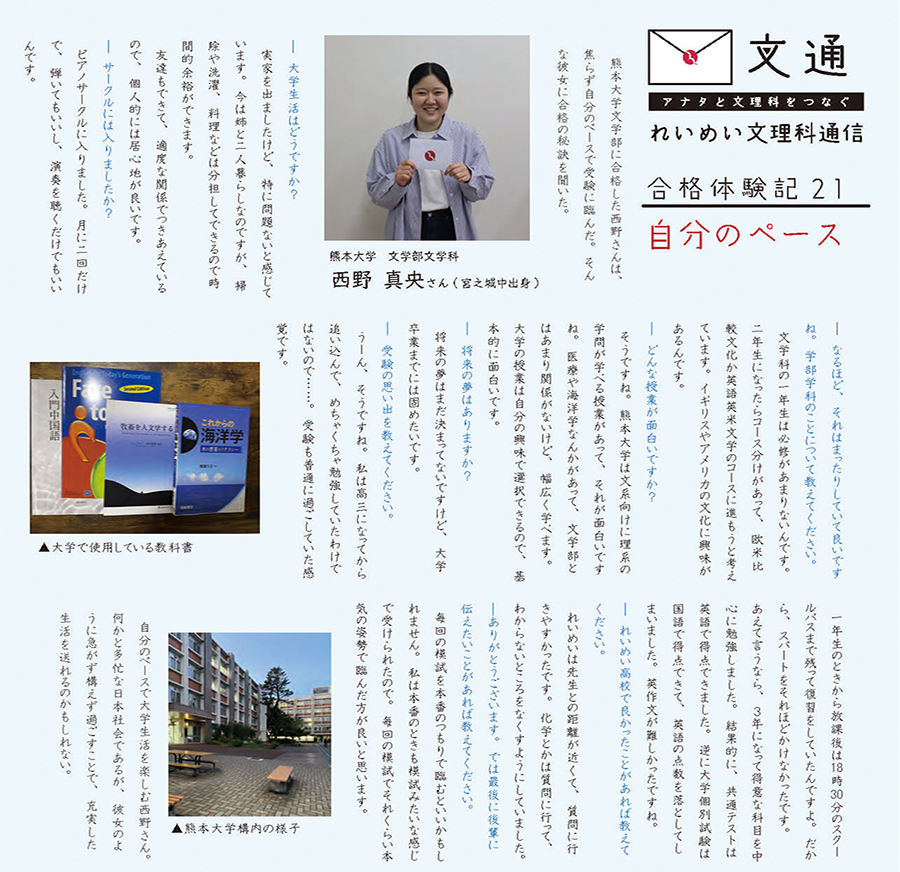 文通は令和五年度より、れいめい高校広報紙「れいめい人」のワンコーナーになりました。